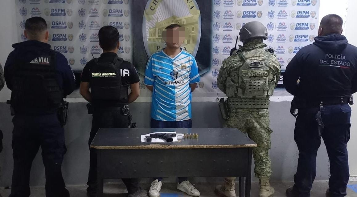 Elementos de la Célula BOI de la Policía Municipal, en coordinación con agentes de Vialidad, detuvieron la madrugada de este martes a un sujeto que desenfundó un arma de fuego y apuntó contra un oficial durante una intervención en calles de la colonia Crucero.