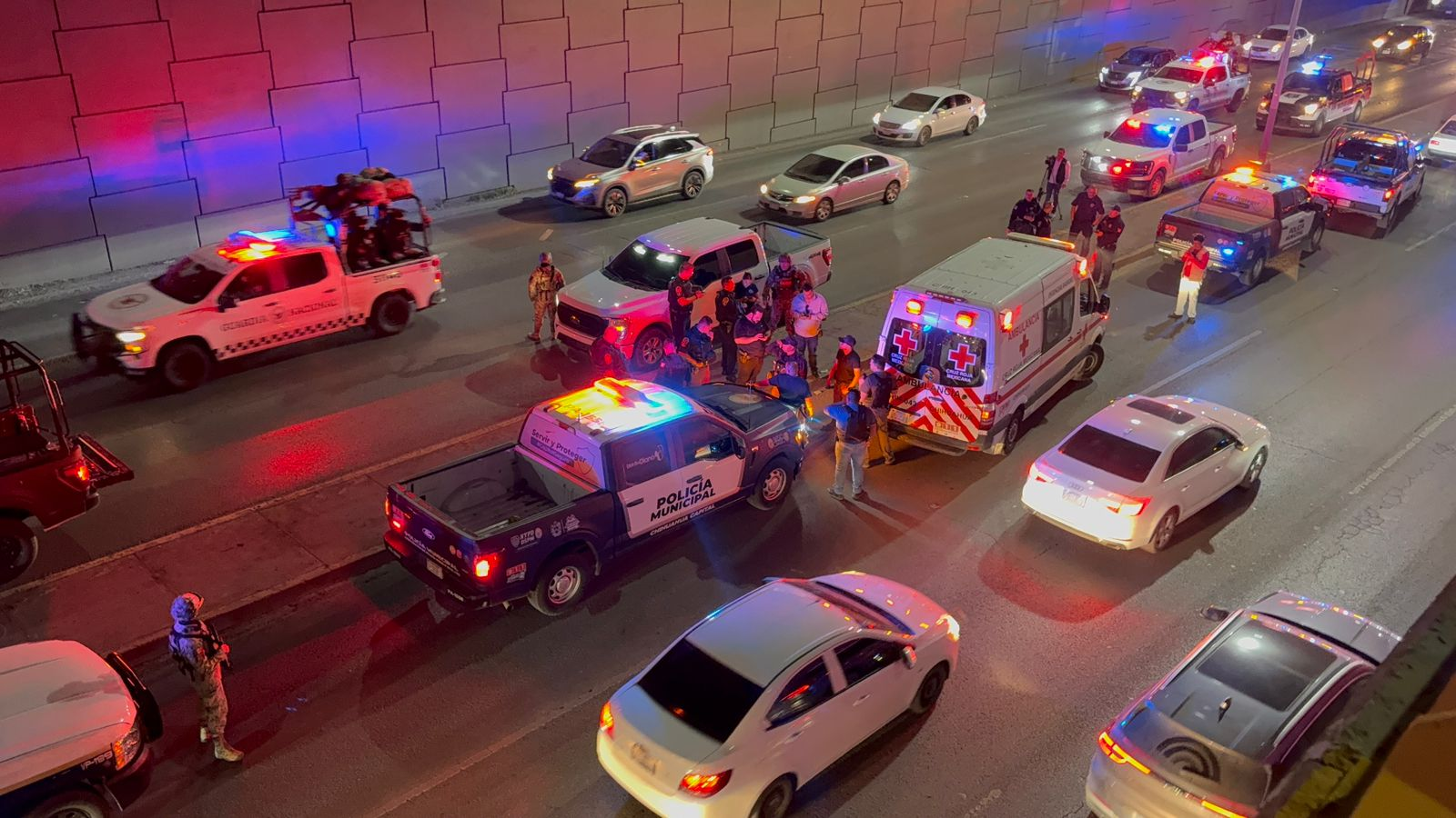 De acuerdo con los primeros reportes, la víctima presentó dos heridas en el costado y una más en el antebrazo. El incidente provocó la movilización de elementos de la Policía Municipal, luego de que se recibiera una llamada al número de emergencias en la que se alertaba sobre una persona herida que solicitaba auxilio desde el camellón central de la vialidad.