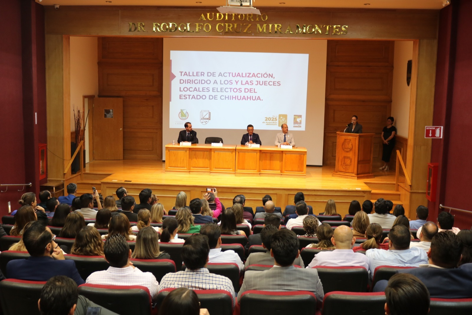 La Universidad Autónoma de Chihuahua, a través de la Facultad de Derecho, inauguró el Taller de Actualización dirigido a las y los Jueces electos del estado de Chihuahua, a través de una ceremonia que se efectuó en el auditorio Dr. Rodolfo Cruz Miramontes.