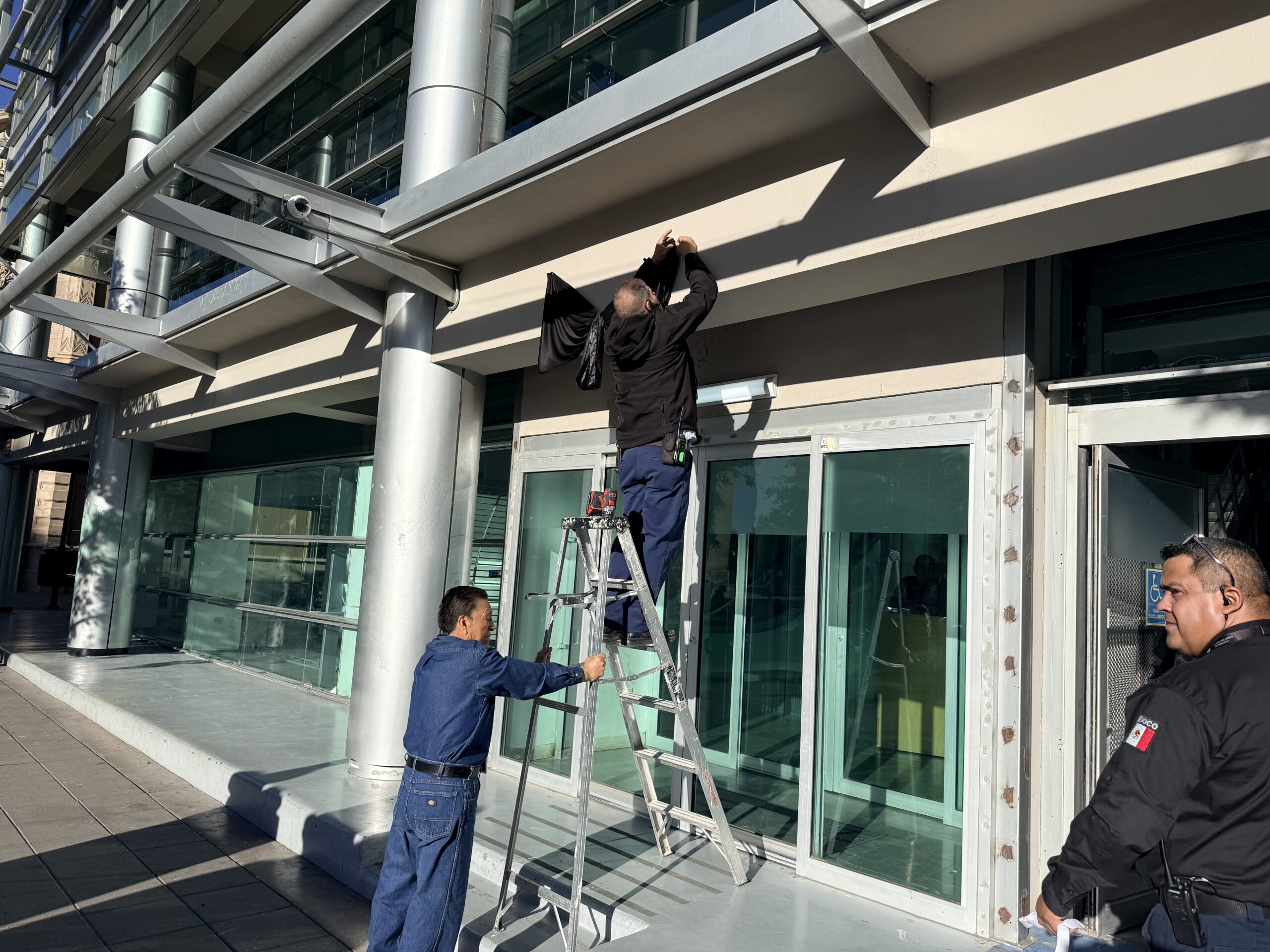 Hoy por la mañana comenzaron a colocar el moño arriba de las entradas a la torre legislativa, además de hacer entrega de un pin para los empleados del legislativo.