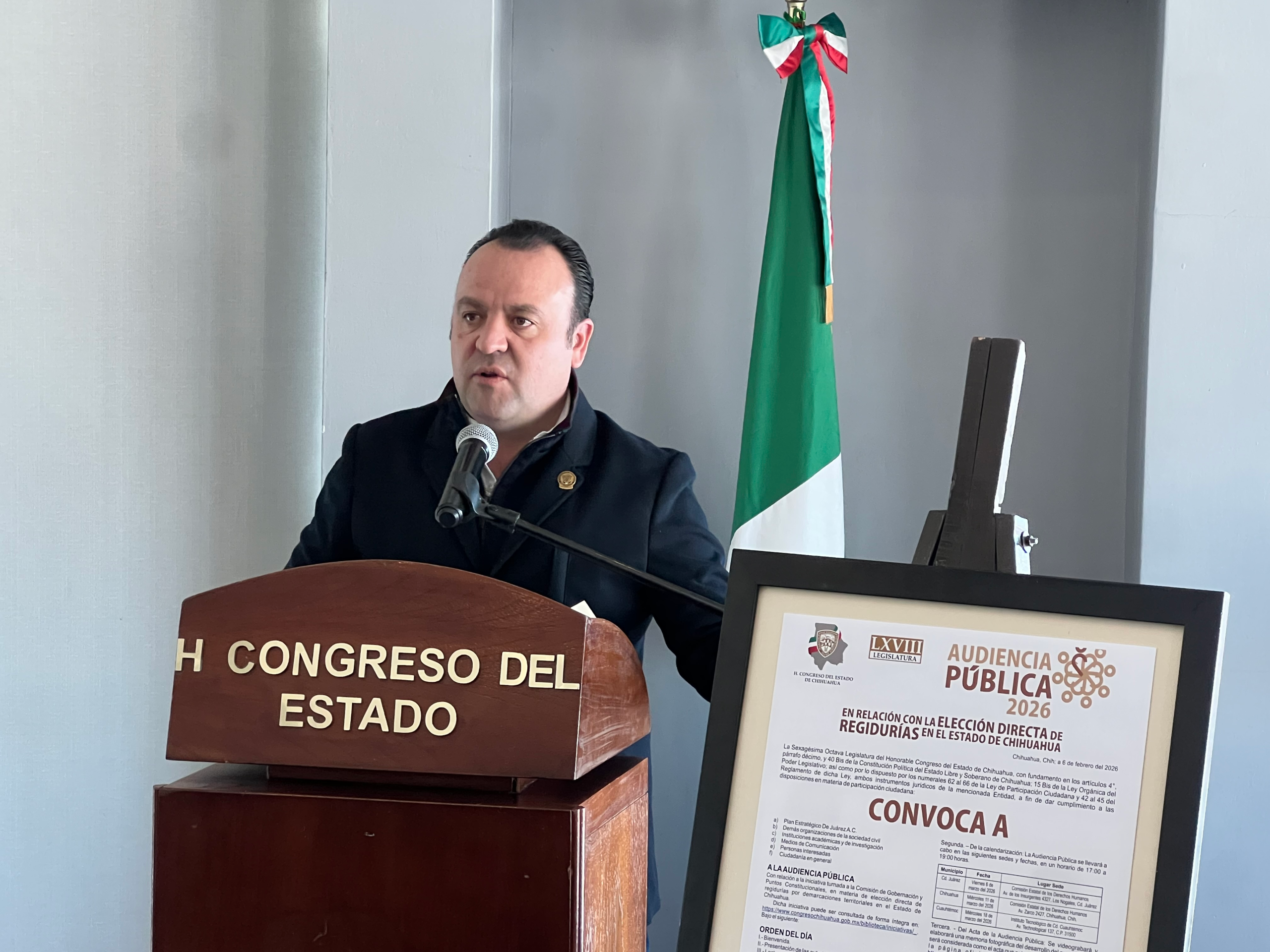 El Congreso del Estado de Chihuahua, a través de la Comisión de Gobernación y Puntos Constitucionales, convoca a la ciudadanía, organizaciones civiles e instituciones académicas para participar en las Audiencias Públicas 2026 sobre la elección directa a regidurías en el estado de Chihuahua.