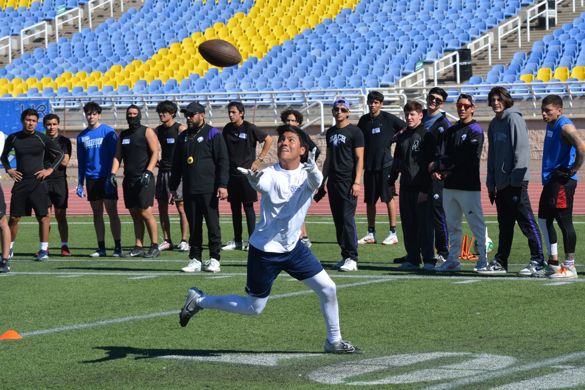 El programa de fútbol americano de las Águilas de la Universidad Autónoma de Chihuahua continúa consolidándose luego del exitoso tryout realizado este sábado en el Estadio Olímpico Universitario, donde quedó de manifiesto el interés y el nivel competitivo de jóvenes talentos que aspiran a formar parte del equipo rumbo a la Temporada 2026 de la Conferencia Nacional de la ONEFA.