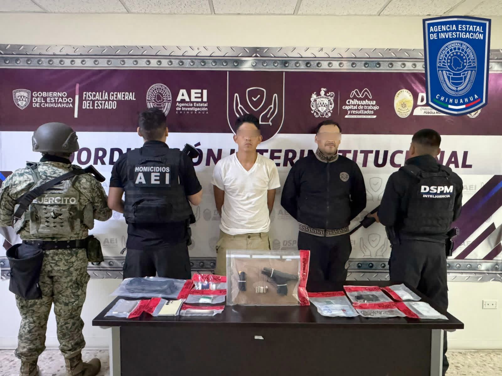 Como resultado del cumplimiento de una orden de cateo en un domicilio de la colonia Nuevo Triunfo, elementos de la Agencia Estatal de Investigación (AEI), adscritos a la Fiscalía de Distrito Zona Centro, detuvieron en flagrancia a dos masculinos, por delitos contra la salud y posesión de arma de fuego, hoy jueves.