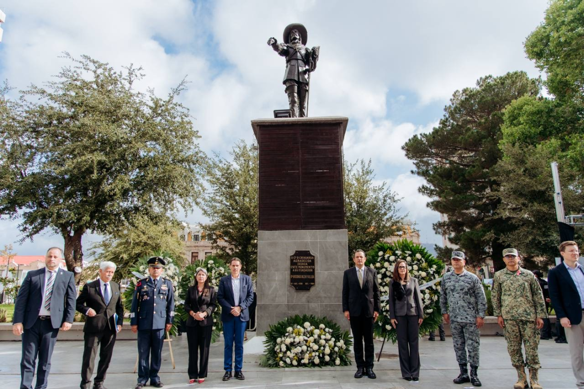 Durante su mensaje, el alcalde recordó que fue un 12 de octubre de 1709 cuando nació San Francisco de Cuéllar, en medio del desierto de la entonces Nueva España, en un valle rodeado de ríos y montañas, donde la vida parecía imposible. Aquella pequeña fundación, que más tarde llevaría por nombre San Felipe El Real de Chihuahua, se transformaría con el tiempo en una ciudad heroica, cuna de historia y de revolución.