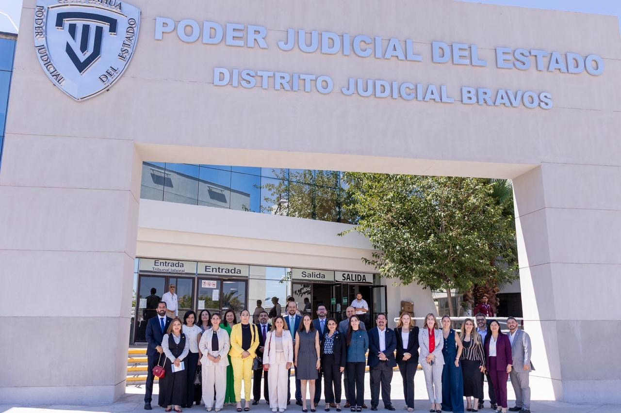 La Presidenta del Tribunal Superior de Justicia del Poder Judicial del Estado de Chihuahua Magistrada Marcela Herrera Sandoval, inició su primera gira de trabajo en el Distrito Judicial Bravos para dar la bienvenida a las nuevas magistradas y magistrados, así como a juezas y jueces de las materias civil, familiar y laboral que se encuentran en las instalaciones del Eje Vial Juan Gabriel de la ciudad fronteriza.