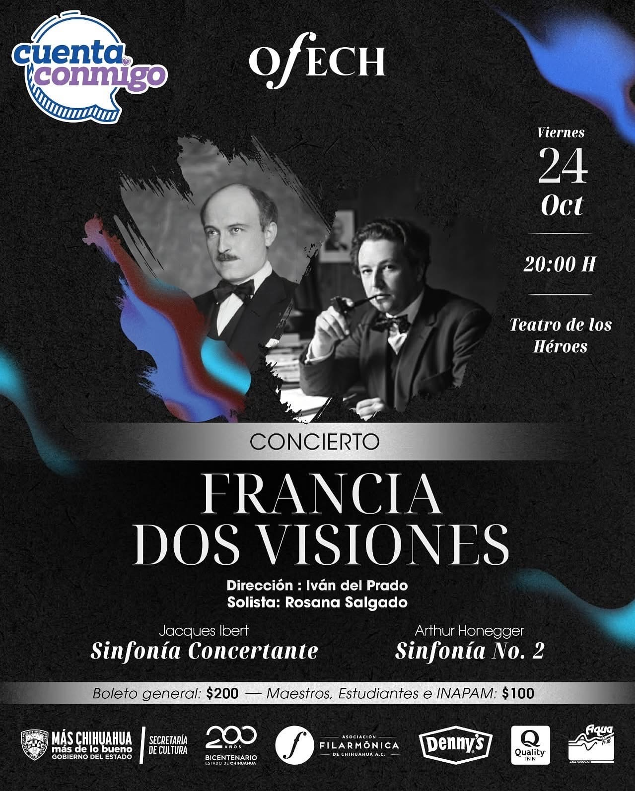 Al concluir, a las 8 de la noche dará inicio el recital en el que el público podrá adentrarse en la sensibilidad y elegancia de la música francesa con la “Sinfonía Concertante” de Ibert, además de la “Sinfonía N°2” de Honneger, con Salgado como solista en el oboe.
