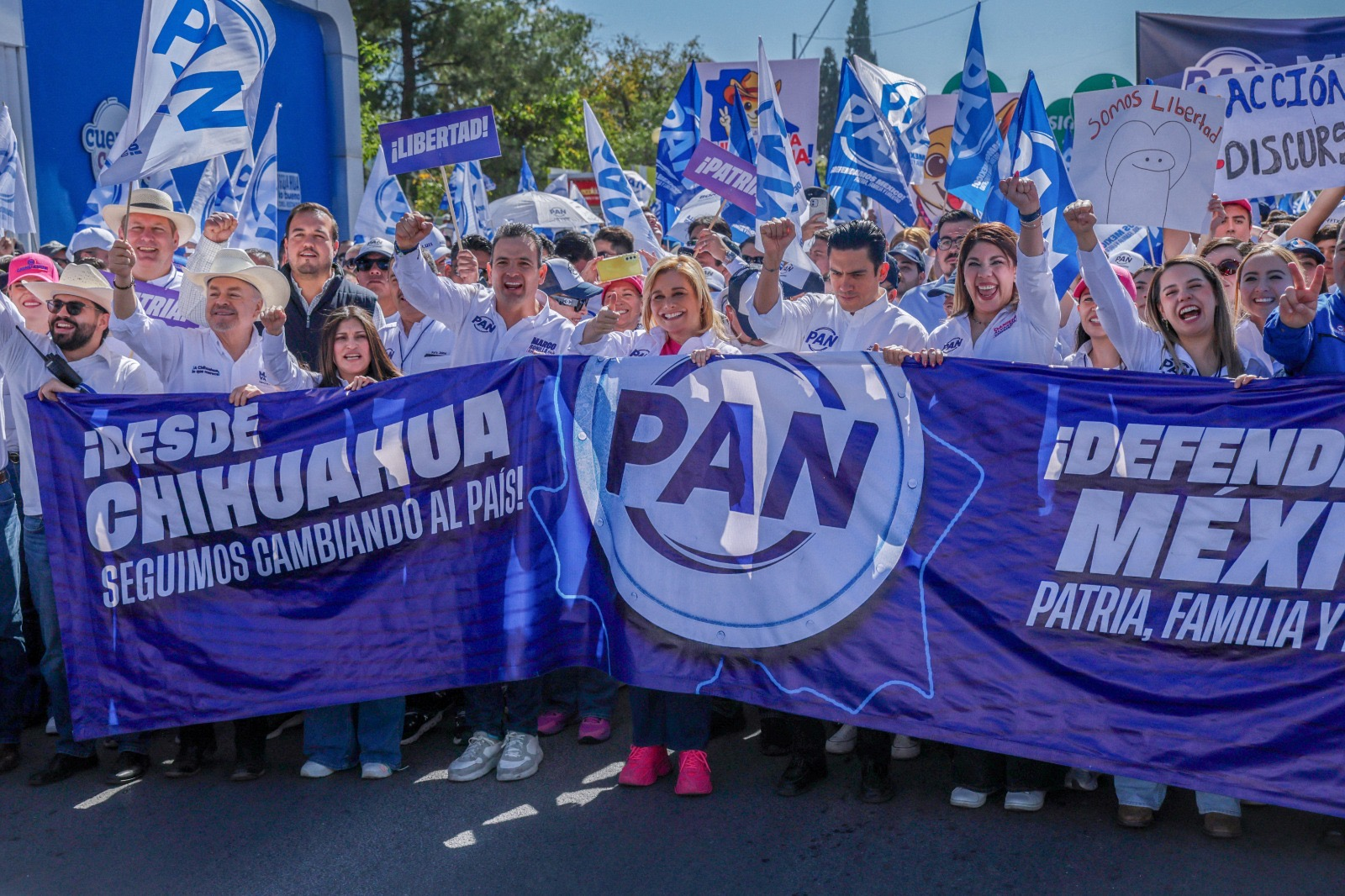 Liderados por los representantes de Acción Nacional como la consejera Nacional Maru Campos, el dirigente nacional de Acción Nacional, Jorge Romero; el consejero estatal, Marco Bonilla; la presidenta del Comité Directivo Estatal, Daniela Álvarez, miles de panistas de todas las generaciones marcharon desde el parque Lerdo hasta la Plaza de Armas para defender la libertad, la patria y la familia como parte del legado que la dirigencia está impulsando en todo el país.