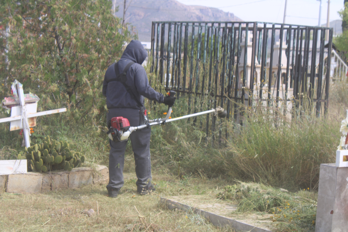 Se realizan trabajos de corte de hierba, papeleo y pepena, en los panteones municipales, ubicados el 1 y 2 en la colonia San Jorge, el 3 en El Porvenir al norte y el 4 en Carrizalillo al sur de la ciudad.